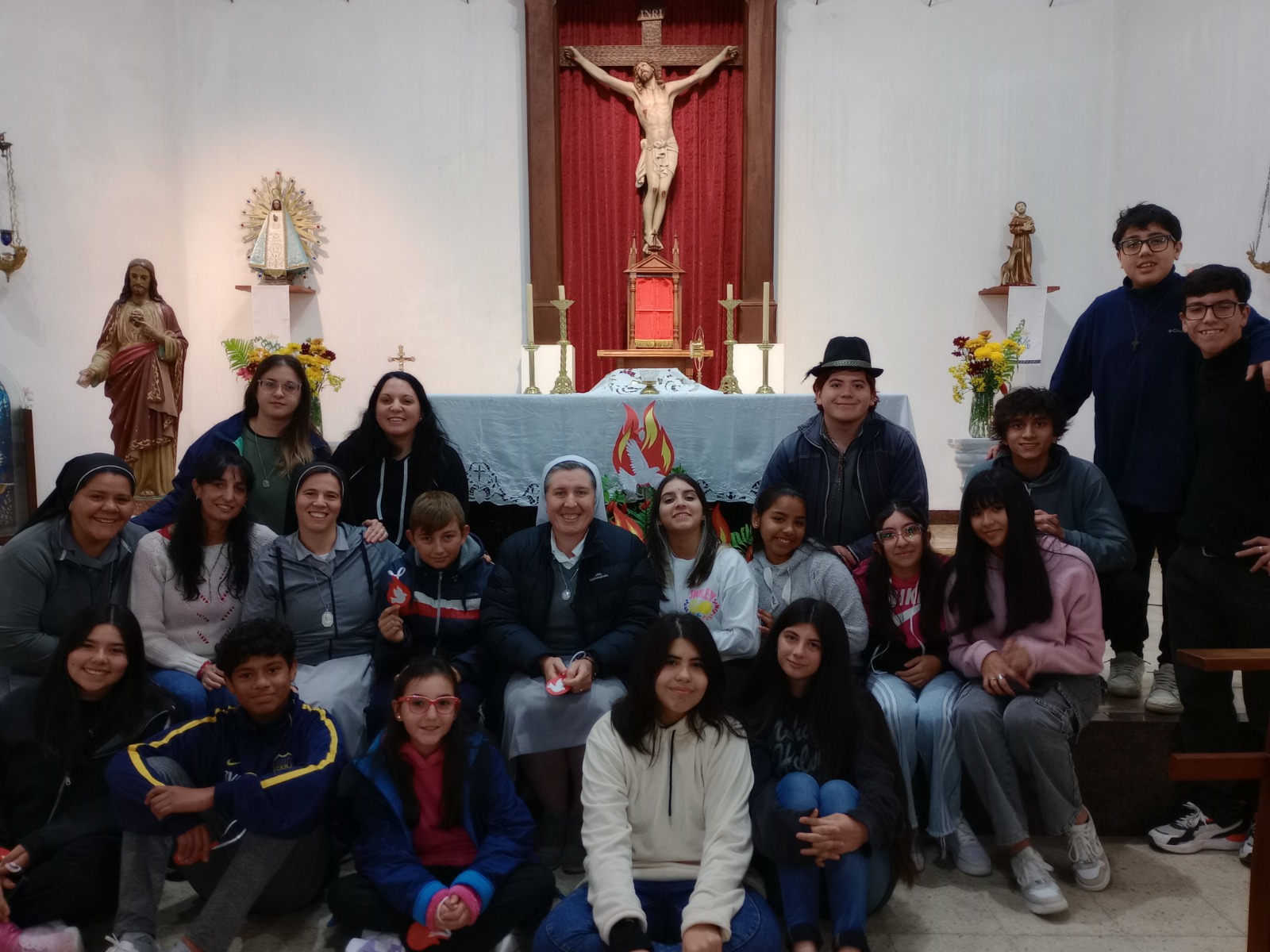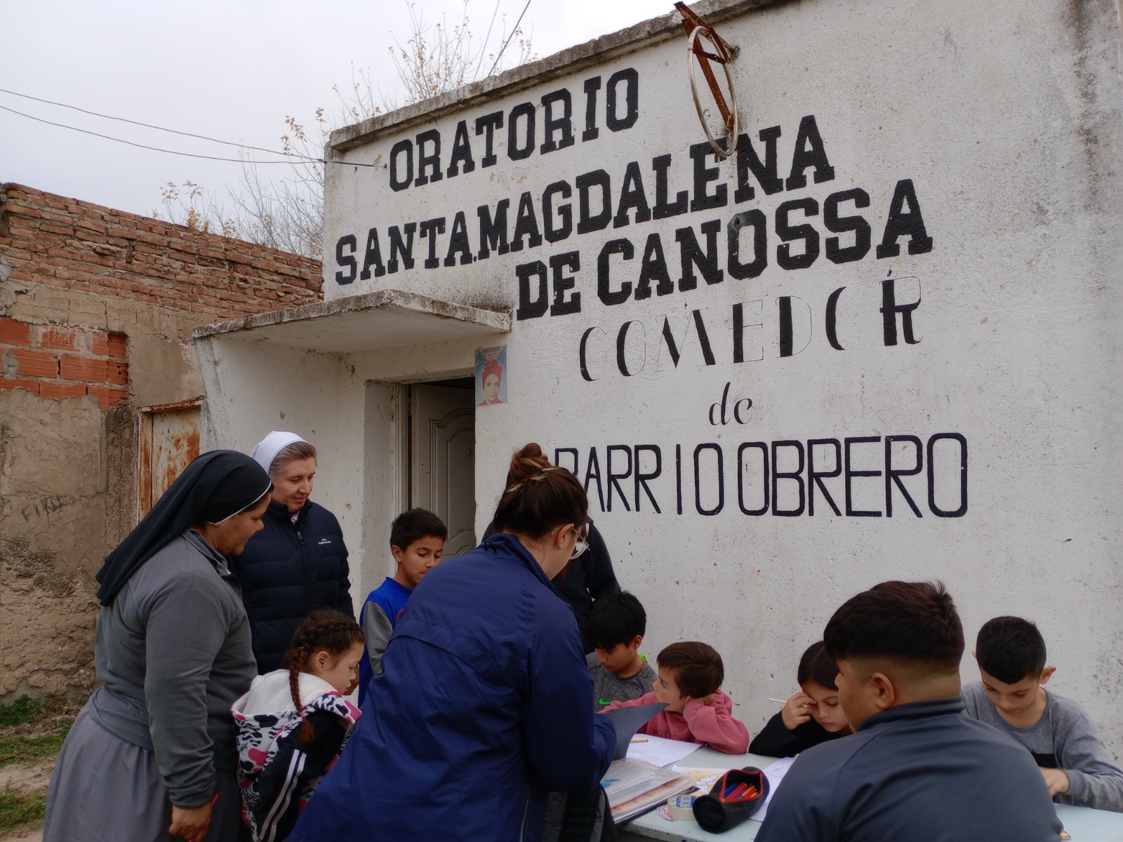 Por la tarde la Madre Melissa visita dos de los lugares adonde las hermanas realizan su apostolado: Oratorio Santa Magdalena de Canossa (en el Barrio Obrero) donde se encontró con la realidad de nuestros hermanos más pobres, recorriendo el barrio y compartiendo con los niños y los encargados del comedor. Luego visitó la Parroquia Nuestra Señora de Luján lugar en el que compartió alegre y sencillamente con el grupo de jóvenes “Acordes de Dios” dialogando con ellos, compartiendo su testimonio de vida y contestando preguntas.