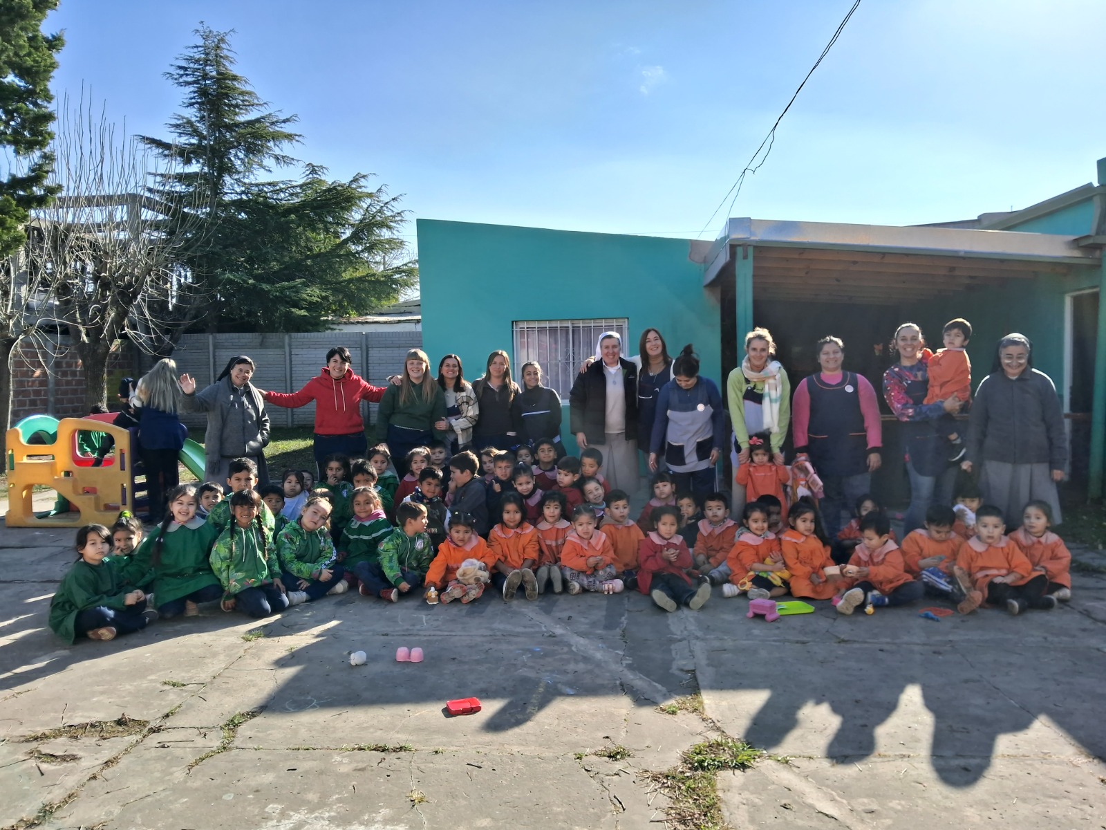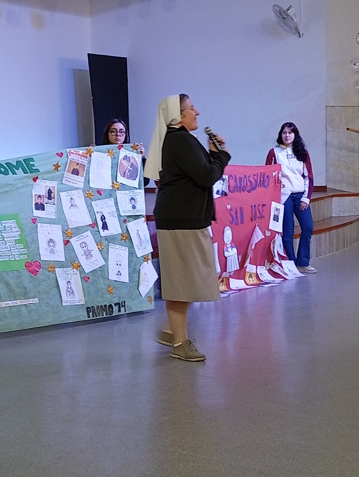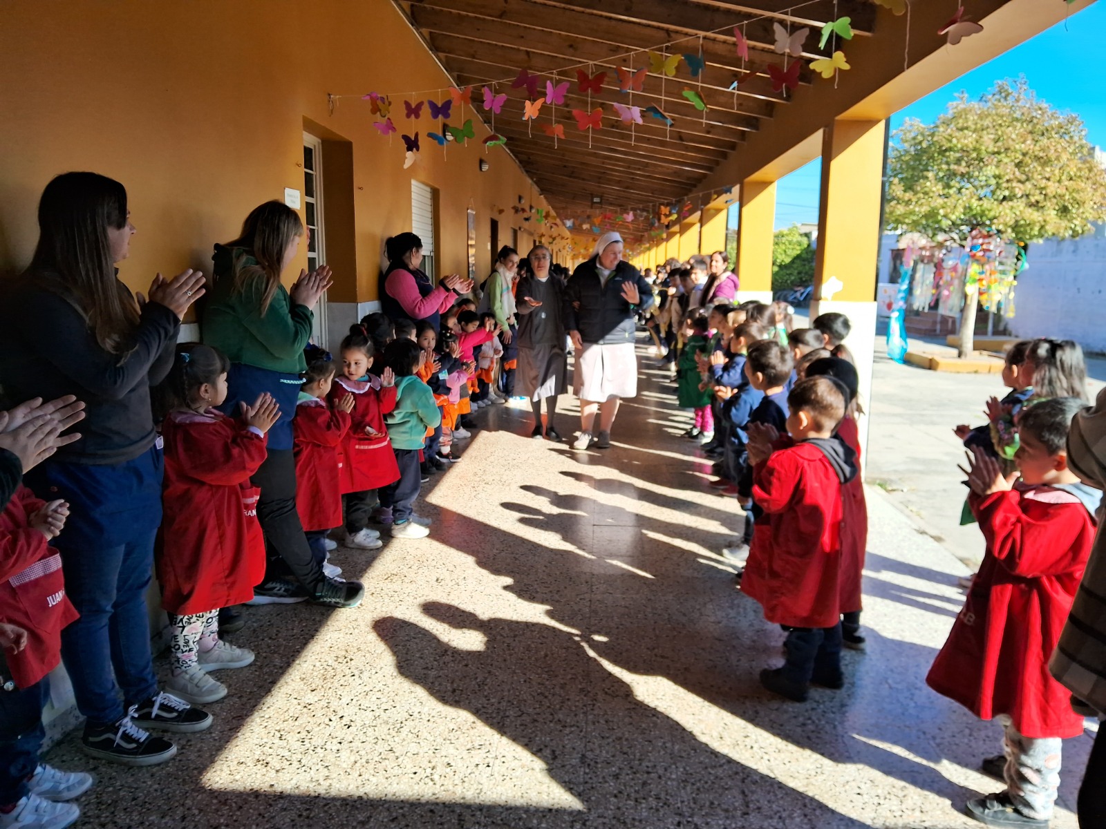 Por la tarde, la Madre visitó nuestra Escuela Nuestra Señora de Loreto (ubicada en un barrio periférico de la ciudad de Berisso) donde fue recibida con gran alegría por el equipo directivo, docentes y niños. Música, coloridas decoraciones y un camino especialmente preparado para su llegada crearon un ambiente festivo y acogedor.  Los niños cantaron “Enciende la vida”, y ofrecieron a la Madre un hermoso presente. La Madre Melissa se mostró muy contenta y agradecida por la labor educativa desarrollada por nuestra Comunidad en nuestros dos Colegios.